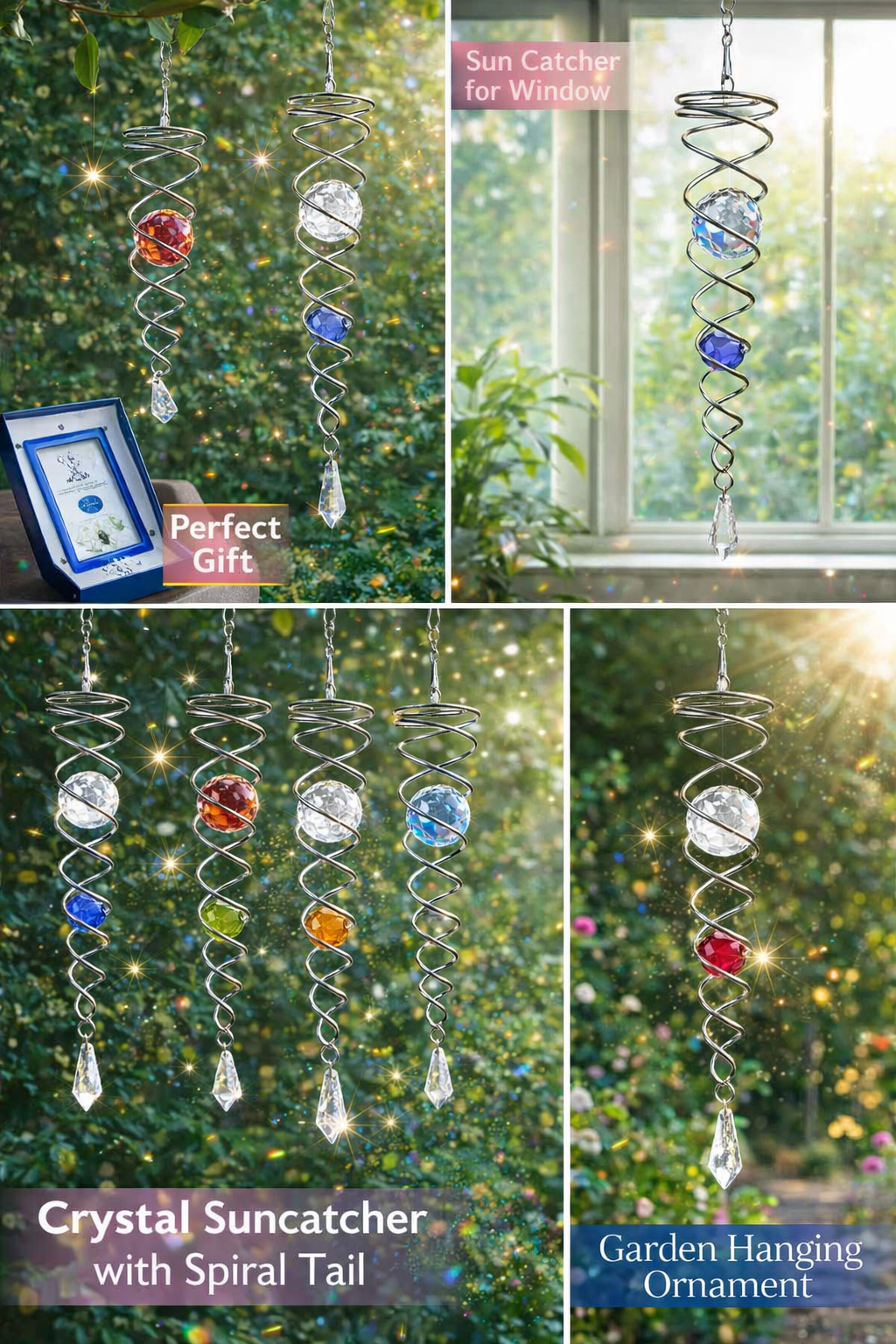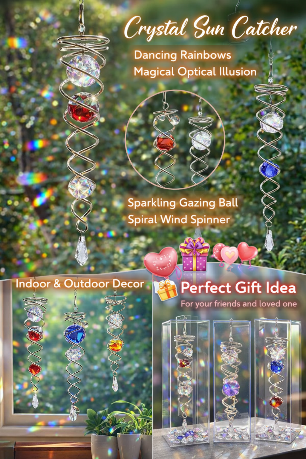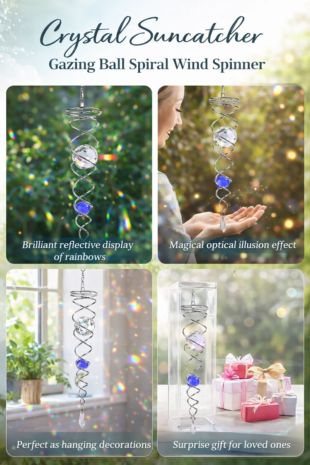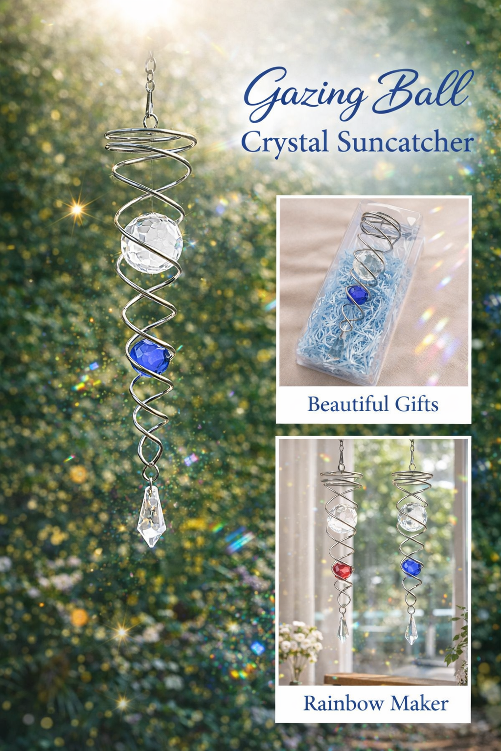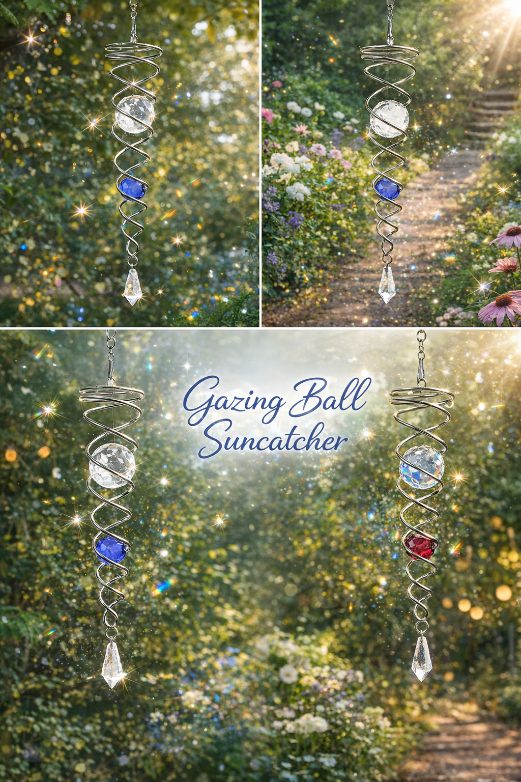Turn ordinary sunlight into a magical display of shimmering rainbows with this stunning Gazing Ball Spiral Suncatcher. A perfect blend of elegance, motion, and light that brings your home & garden to life! 💫